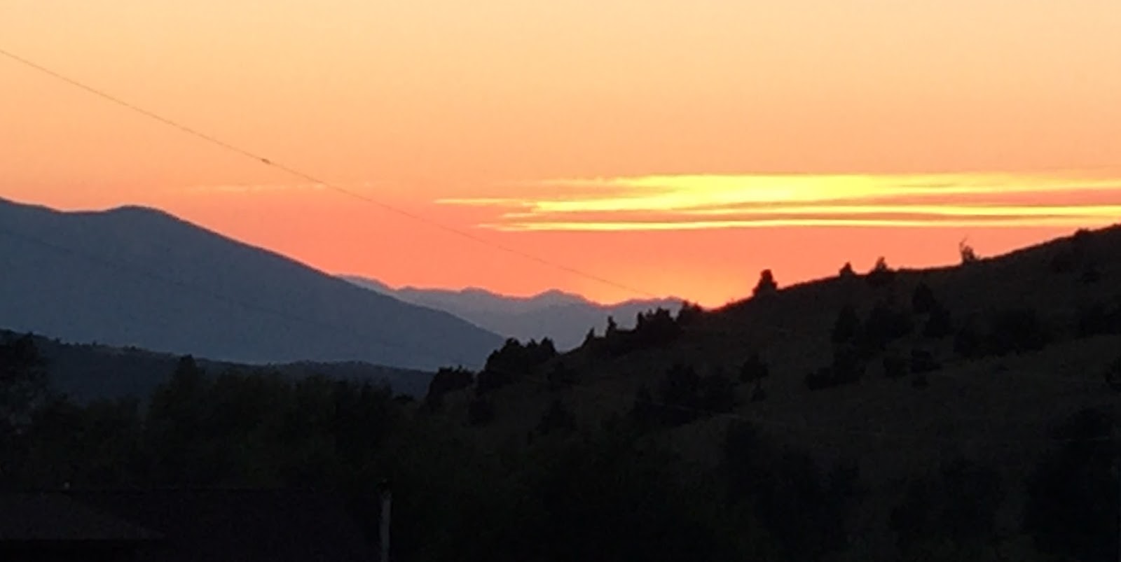 Thursday night we all went out to dinner at a great steak house in a little town named Alder which is about 9 miles away. We met Michael's family there for the first time. His mom, dad, stepmom and sister had all traveled from St. Louis to share in the celebration. When we got back to the RV park that evening this is the view of the gorgeous sunset.